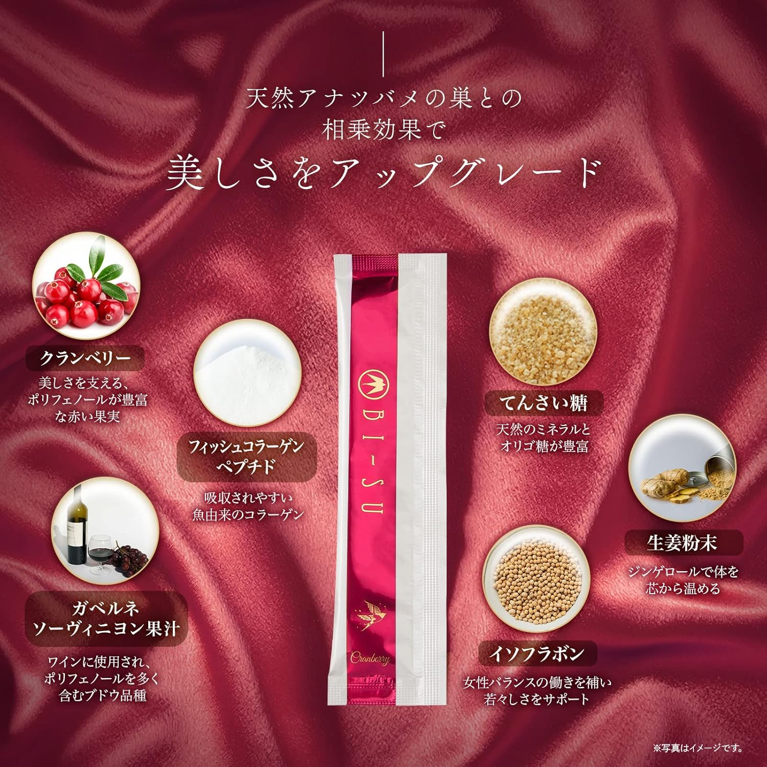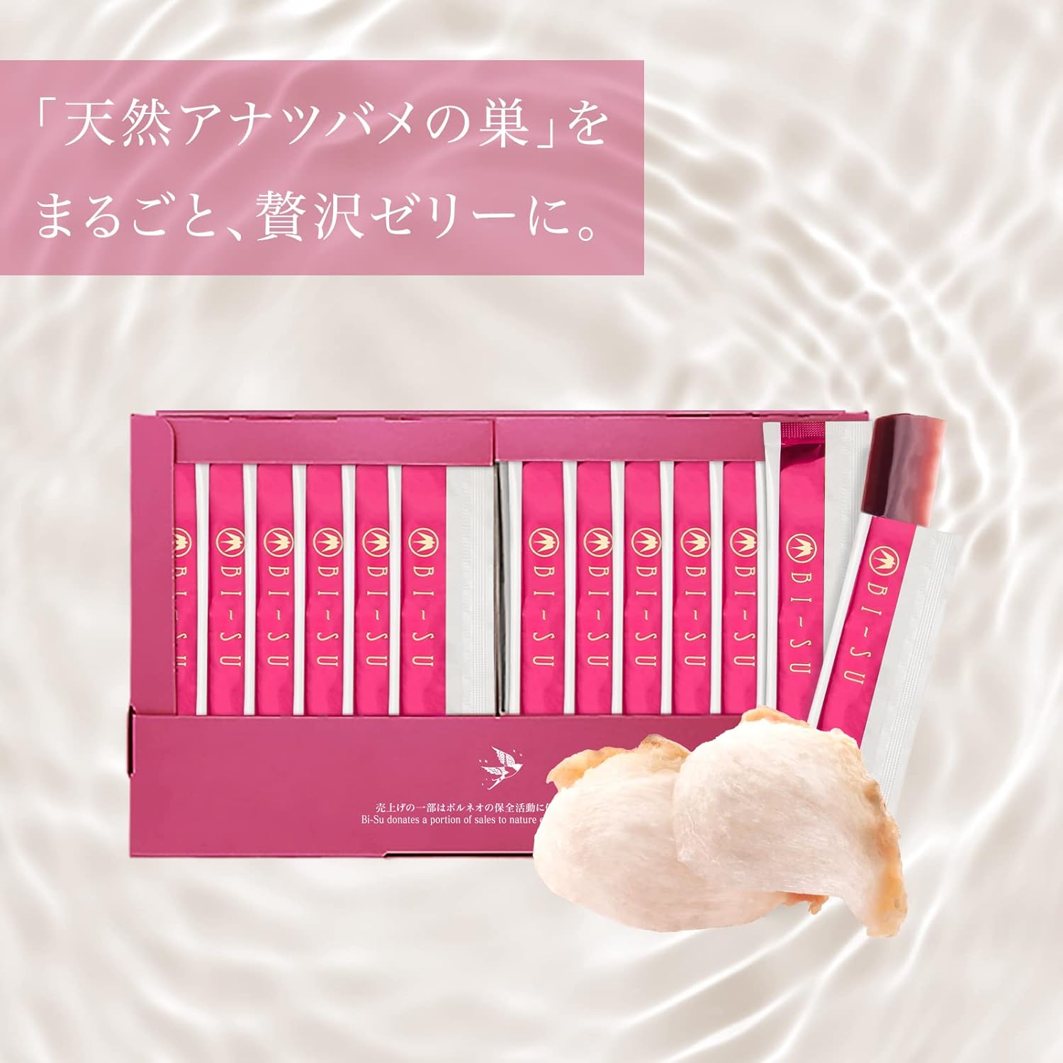 BI-SU 美巢 燕窩萃取果凍(蔓越莓口味)30小包30日量 🇯🇵日本製造🇯🇵 獻給追求真實之美的您。我們嚴選自古以來被譽為美容聖品的天然金絲燕窩,其富含的珍貴「唾液酸」與美容因子「EGF」,能由內而外調理肌膚,助您重現彈力與光澤。 我們堅持只採用馬來西亞政府嚴格控管的100%天然燕窩,並透過獨家萃取技術,將這擁有千年歷史的高級食材化為高濃度精華,確保每一口都是純淨與高效。 產品更添加富含多酚的蔓越莓,打造酸甜可口的風味,讓保養成為每日享受。每日一條,12g的輕巧包裝,輕鬆為您補給燕窩精華、膠原蛋白肽、白木耳及維生素C等多樣營養,是您對抗肌齡、維持健康的最佳選擇。建議冷藏後食用,風味更佳。 ⭐️食用方法: 每日1小包,輕鬆直接服用。
