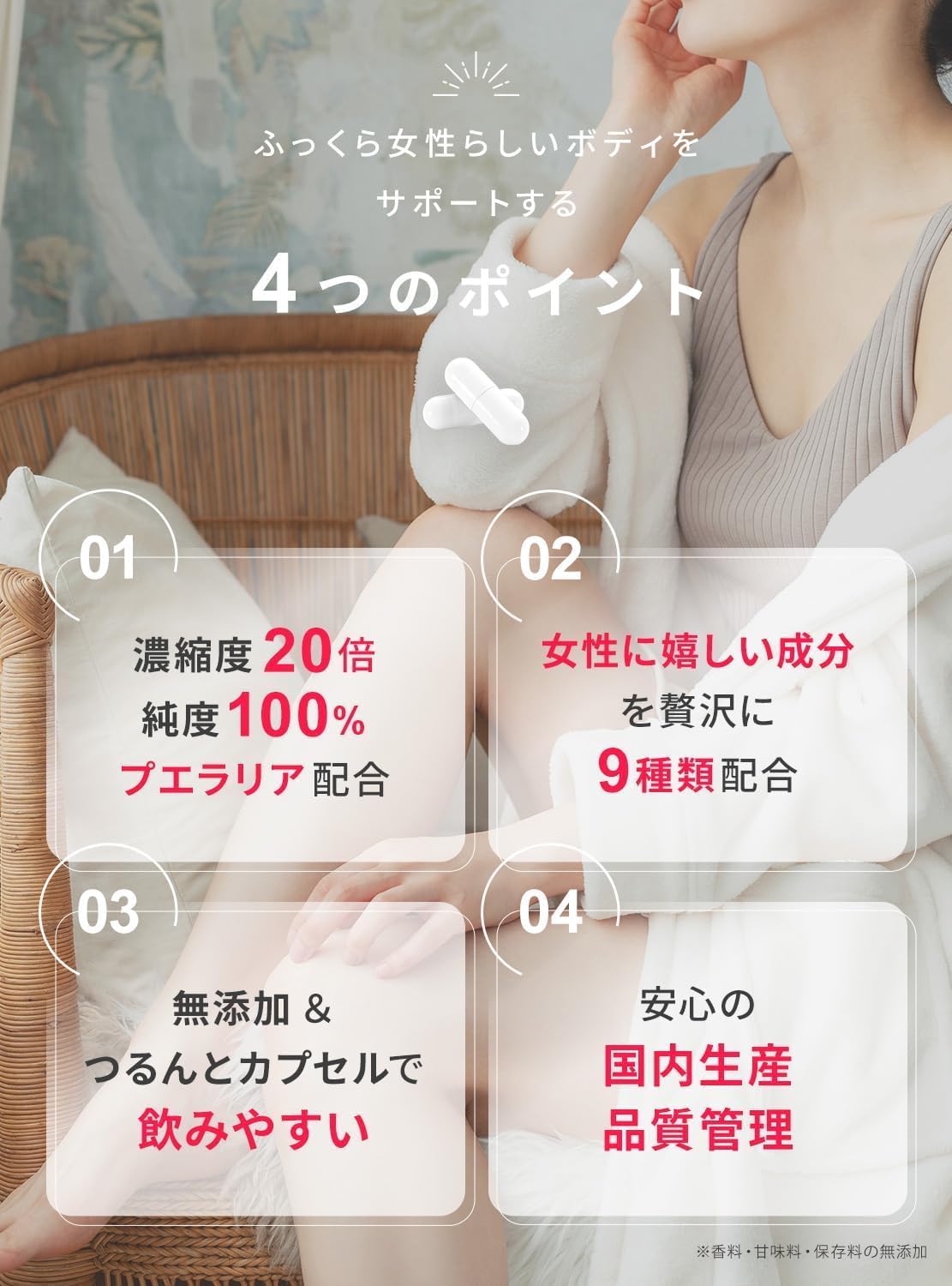 Belta Pueraria 100%純正野葛根豐胸丸 90粒30-90日量/豐胸霜 100g ~日本製~ Belta Pueraria因日本藝人及Blogger也在使用而成為話題,配合泰國厚生勞動省最高AAA級認證純正100%葛根,安全有效,劣質豐胸產品經常會被報出有危害健康的狀況發生,選購時一定要小心。 🚫無合成色素、無石油類界面活性劑、無礦物油、無Paraben類防腐劑、無矽靈、無酒精、無紫外線吸收劑等🚫 豐胸丸: Belta Pueraria的設定標準攝取量是一天400mg(3顆),但由於泰國的標準量是一天100mg,所以初期服用最好每日1粒,待服用一段時間後再按自己需要是否增量,每日不得超過3粒。 豐胸霜(不單獨銷售): 大馬士革玫瑰香味,成份包括野葛根萃取液、野山藥萃取液、3種玻尿酸、多種植物萃取液等美容成份。 ⭐️使用方法: 豐胸丸:每日1-3粒,以溫水服用,初期可以先由1粒開始,食用一段時間後身體並無任何不良反應可以慢慢加量至每日3粒。 豐胸霜:取適當份量塗於胸部,請以適當的力度溫柔按摩,按摩後請習慣性清洗雙手。 ⭐️特別注意: 孕婦、哺乳、尚未初經者、罹患婦科疾病者(如子宮內膜癌、子宮內膜增生及乳腺癌等)、罹患血栓性靜脈炎、肺栓塞、冠心症、中風等疾病者,還有正在服用其他藥物者,都應避免食用。