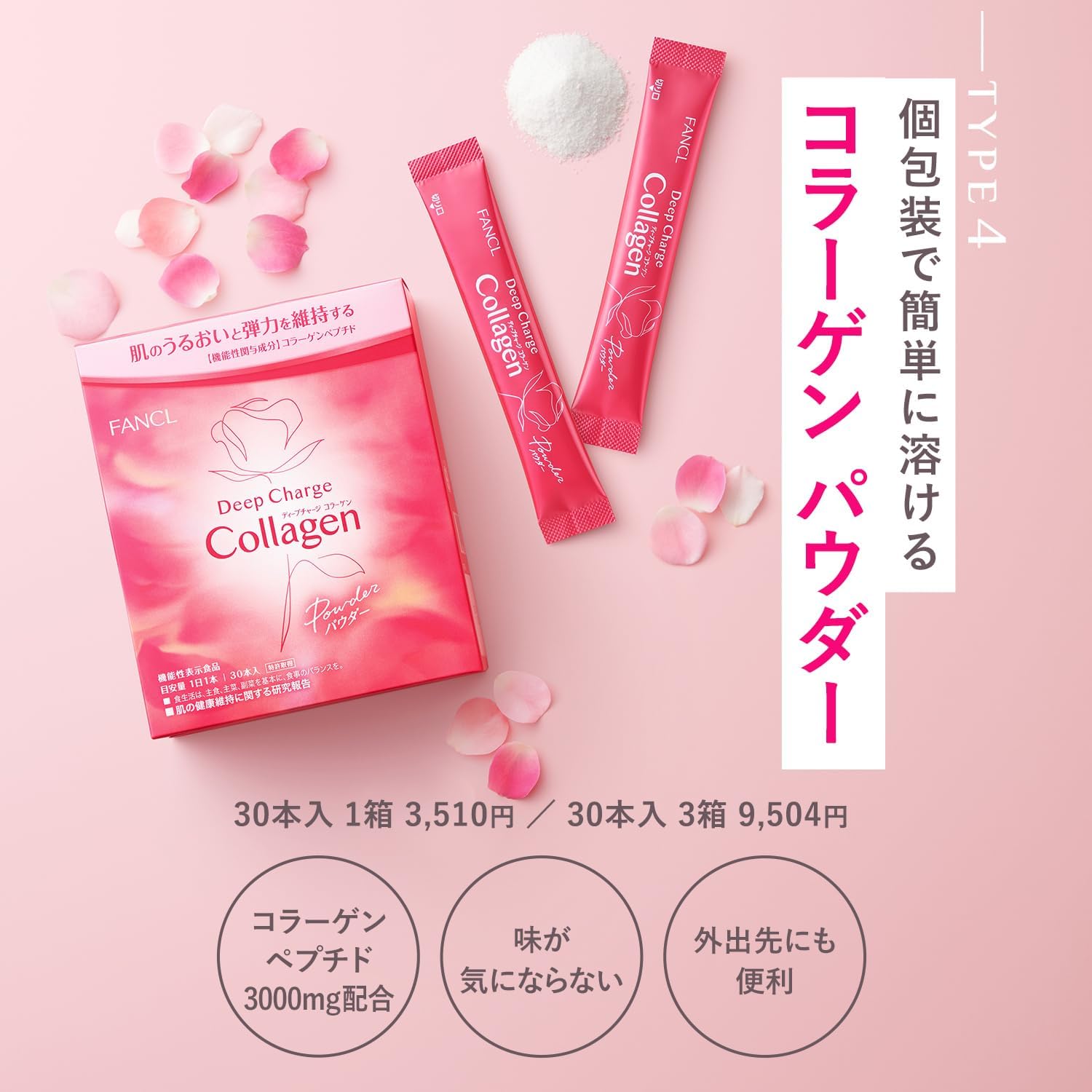 FANCL無添加 升級配方 高效HTC美肌蘋果多酚膠原蛋白粉 30袋30日量 ~日本製~ 份子極細,較一般膠原蛋白更速效被肌膚吸收,有效補充肌膚每日流失的膠原蛋白。 提升修復機能:促進肌膚的更新,令肌膚的營養輸送更佳,提升肌膚的修復機能。 肌膚年齡持久年輕:膠原蛋白是維持肌膚彈性緊緻的重要元素,持續補充,能改善鬆弛、毛孔粗大,皺紋等問題,保持肌膚年齡年輕。 肌膚柔滑飽滿:擴大肌膚的儲水空間,讓肌膚的含水量時刻處於年青狀態,令出現粗糙、乾紋現象的肌膚回復柔滑飽滿。 ⭐️成分含量: 每小包含膠原蛋白勝肽3000mg ⭐️食用方法: 膠原蛋白粉:每日1-2包,加入飲品混合服用。 (1盒30日量)