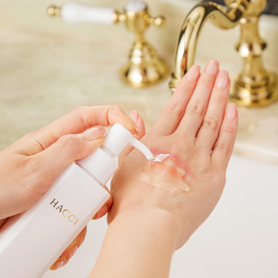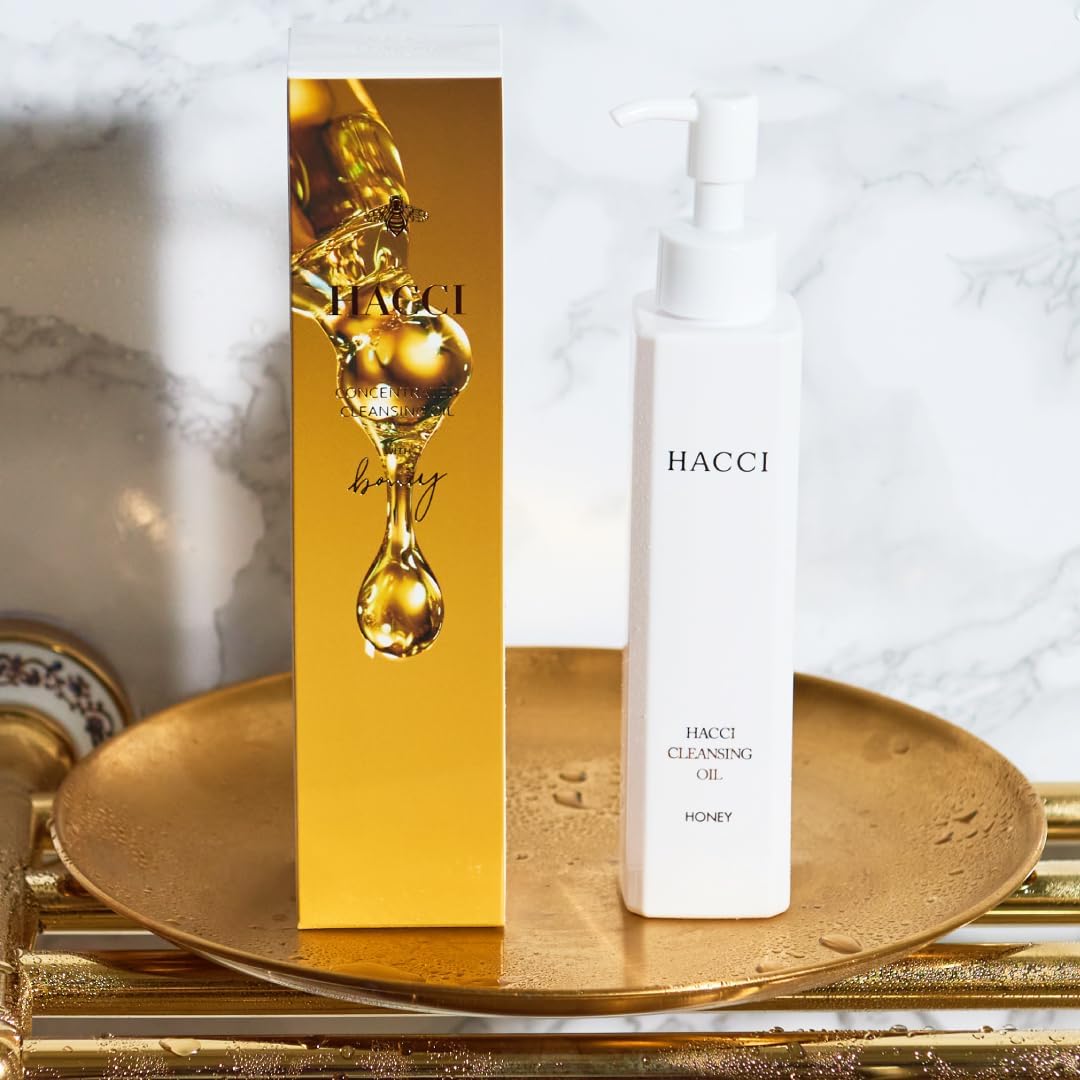 HACCI 蜂蜜卸妝油 150mL 🇯🇵日本製造🇯🇵 盡享 HACCI 五星級潔面乳,美麗始於潔顏。 這款潔顏油以蜂蜜為基底,蘊含超過 95% 的植物萃取美容成分*。無需揉搓,只需卸妝油! 1️⃣輕觸即可快速卸妝。 蘊含兩種棕櫚萃取油,充分發揮其鎖水功效,並添加適量蜂蜜。無需揉搓,即可輕鬆卸除彩妝,即使少量也能快速卸除。 2️⃣超過 95% 的植物萃取成分。 蘊含精心挑選的植物萃取成分,溫和卸除一天的妝容,讓肌膚倍感水潤滋養。 3️⃣ 沁人心脾的香氛。 金色的油身散發著柔和的香氛,蘊含橙子、雪松和絲柏等精油,並融合 HACCI 的經典香氛。 ⭐️使用方法: 1️⃣取適量卸妝油。 2️⃣打圈按摩全臉,溶解彩妝。 3️⃣沾水乳化,輕柔按摩至油體變白。 4️⃣溫水沖淨,直到皮膚清爽無油膩感。 5️⃣建議後續再使用洗面乳清潔。 ⚠️使用時請確保手臉乾爽無水份,並充分乳化,才能徹底清潔。