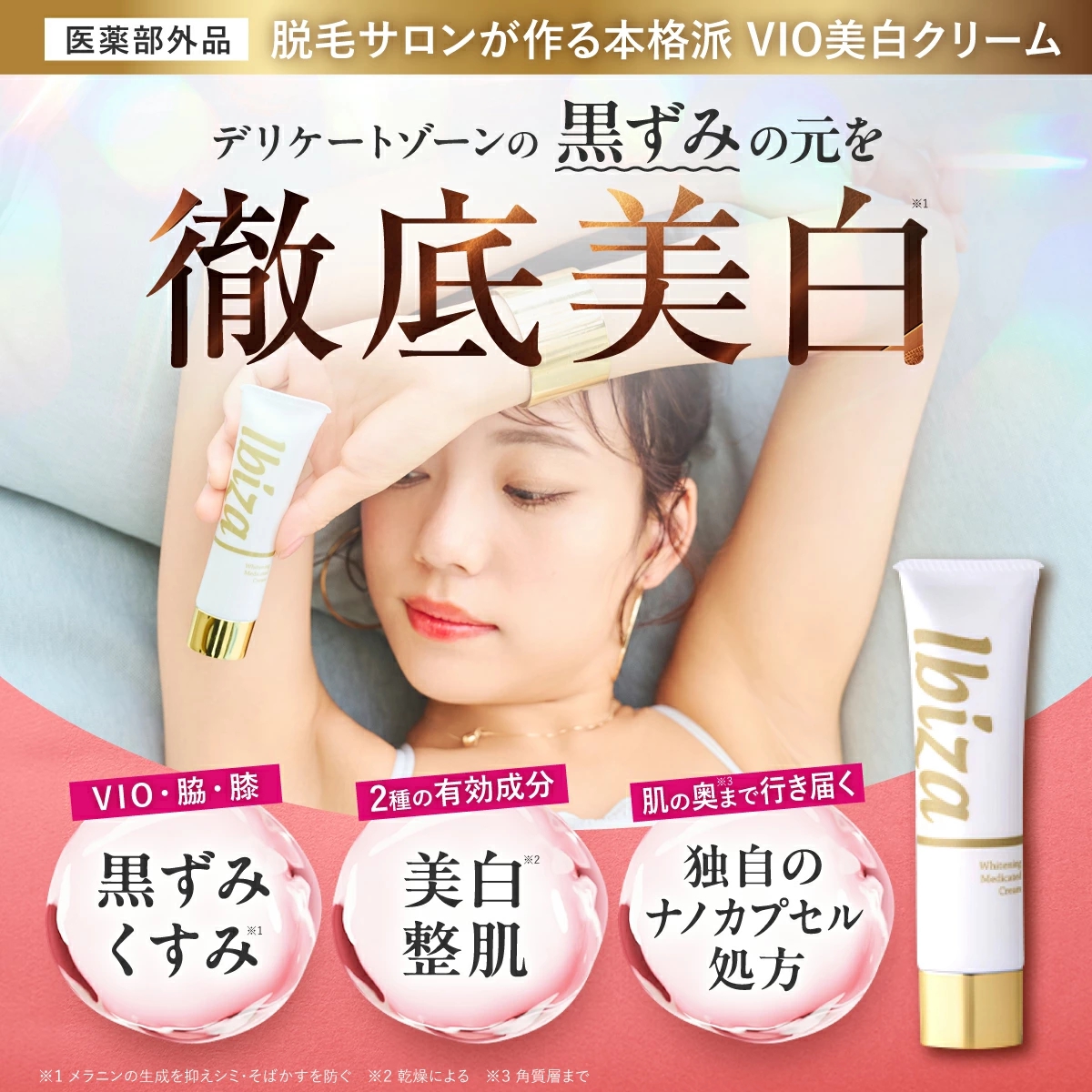 Ibiza Beauty 私處美白粉嫩乳霜 40g ~日本製~ 輕鬆擊退私處黑色素沉澱,同類產品銷量高企,由專業高級美容沙龍開發,消費者滿意度96.7%。 富含四種植物成分,提升粉嫩效果,八種滋潤成分,呵護受損肌膚。 不使用合成香料、色素、礦物油、不含表面活性劑 配合調理肌膚成分傳明酸、甘草酸二鉀,有效控制黑色素,帶走死皮,使肌膚恢復嫩白。 ⭐️使用方法: 沐浴後,取米粒大小用量塗抹於黑色素易沉澱的位置(黑斑、乳暈、腋下、私處),輕輕按摩至完全吸收。