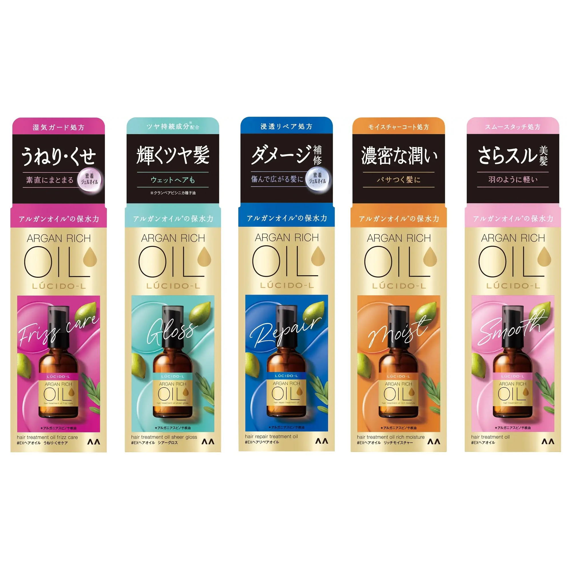 LUCIDO-L Argan Rich Oil EX 護髮精油 60ml ~日本製~ 賦予每一根秀髮潤澤的保護膜,密集修復分叉、斷髮等秀髮損傷,秀髮絲滑柔亮,保護秀髮不受電吹風等的熱傷害,護理脆弱開叉的受損髮質,改善乾燥,保濕並保持髮質豐盈蓬鬆。 綠:透明感・滿溢光澤 紫:深層滲透・抗毛躁/自然捲護理 藍:深層滲透・損傷修護 橙:濃密・滋潤服貼 粉:高質感・輕盈順滑 ⭐️使用方法: 按壓少量精油,均勻地塗抹於頭髮及髮尾,搓揉按摩至完全吸收。 1️⃣洗髮後,用吹風機吹到頭髮半乾,使用精油後再將頭髮吹乾。 2️⃣造型前使用精油,能保護頭髮免受造型時的損傷 3️⃣使用夾髮棒前使用,能保護頭髮免受夾燙時的熱力損傷