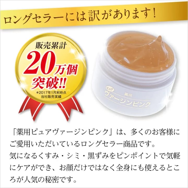 Pure 藥用 私密美白精華 70g 🇯🇵日本製造🇯🇵 歷久不衰的經典之作,見證卓越成效! 熱銷累計 突破萬瓶!(截至2017年1月底本公司銷售實績) 深受廣大顧客喜愛,並創下長期銷售佳績的經典商品。 能輕鬆針對在意的暗沉、斑點與黑色素進行精準護理,不僅能用於臉部,更可延續至全身使用,這正是它深受歡迎的秘密。 每日防禦紫外線,是打造美白肌膚的關鍵! UV PROTECTION 向過度紫外線說「不」! 美白護理的關鍵,在於事先預防,避免肌膚過度暴露於紫外線下! 現在就開始養成美白習慣,阻止肌膚再產生更多斑點,迎向更純淨透亮的未來。 ⭐️使用方法: 早晚清潔肌膚後,取適量均勻塗抹於黑色素沉澱位置,每日1-2次,可用於唇部、乳暈、腋下、私處等黑色素容易沉澱的位置。