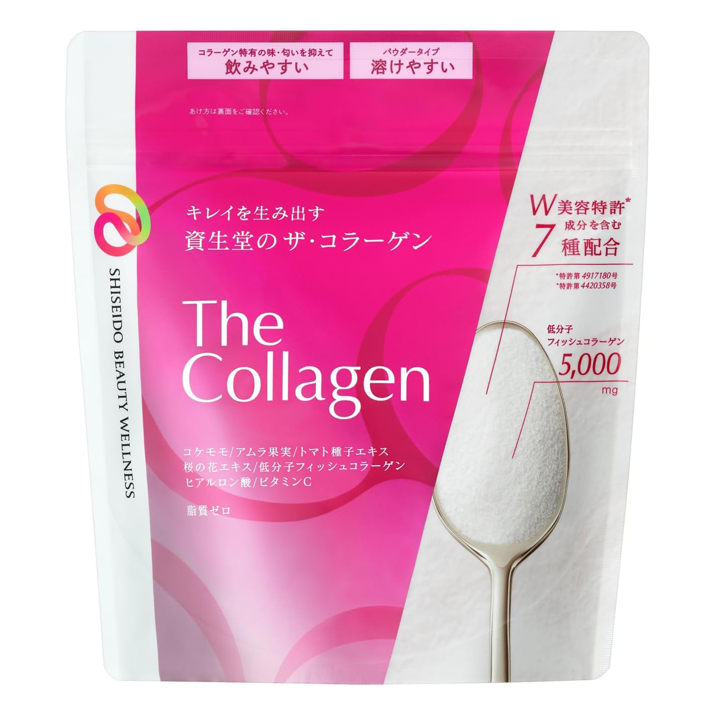 Shiseido資生堂 新升級 The Collagen 膠原蛋白精華粉 126g21日量 ~日本製~ 隨著年齡的增長,膠原會不斷流失,所以愛錫自己的女生都應該要及時補充膠原蛋白。 膠原的補充重在吸收,而資生堂的這款膠原產品最關鍵的是這款膠原蛋白可以幫助膠原生成,獨家研發美容成分更取得2項特許專利,特許專利第4917180號及特許專利第5996156號。 ⭐️主要成份: 特許專利成分Cowberry + Amla Fruit、特許專利成分草莓籽提取物、溫州蜜柑提取物、低分子膠原蛋白、透明質酸、維他命C ⭐️食用方法: 每天6g,膠原蛋白的腥味經特殊處理,可以添加於飲品、牛奶、果汁、咖啡、甚至料理中配搭飲用。