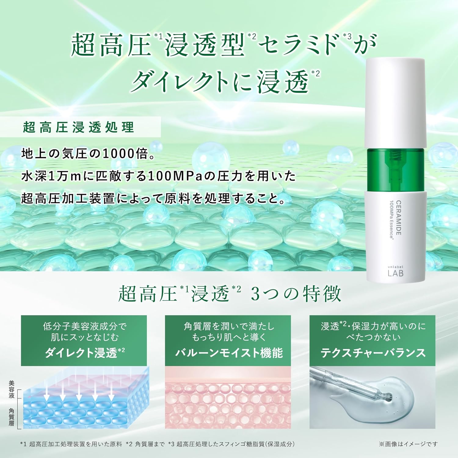 Unlabel LAB CM 神經醯胺精華液 50ml ~日本製~ 採用100MPa超高壓技術打造的滲透精華液。蘊含100MPa神經醯胺。採用相當於水下10,000公尺壓力的超高壓萃取的神經醯胺,能夠深入滲透至角質層,增強肌膚屏障功能,滋潤肌膚,防止乾燥。 更能直擊乾性及季節性敏感性肌膚。 七大零添加成分:無香料、無合成色素、無石油系界面活性劑、無滑石粉、無對羥基苯甲酸酯、無矽油、無酒精。 ⭐️使用方法: 潔面後,取適量(按壓1-2下)於掌心,輕輕塗抹於整個臉部。對於眼周、嘴角、臉頰等容易乾燥的部位,可多次塗抹。