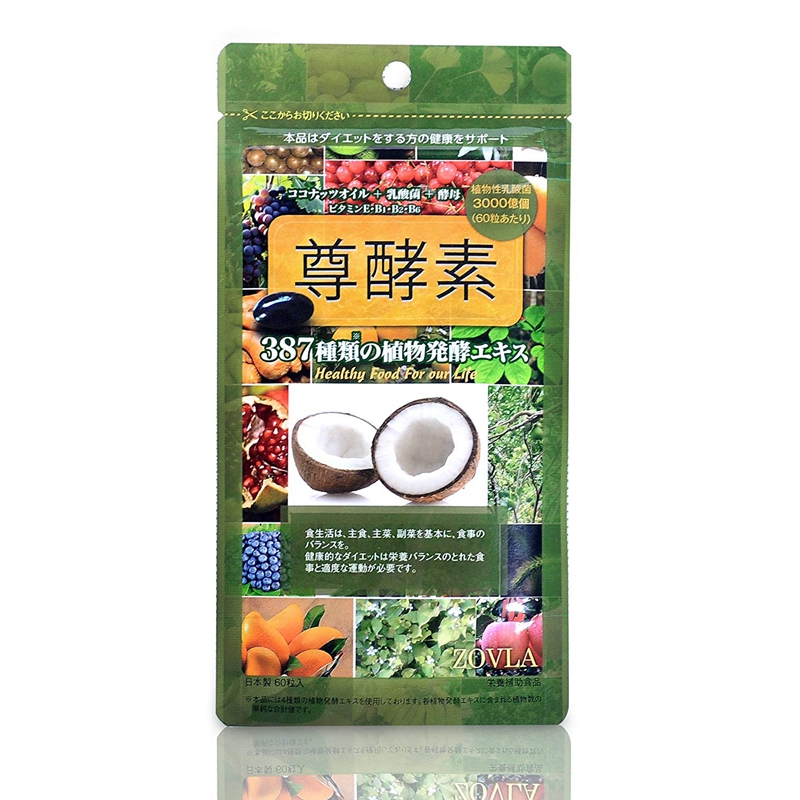 ZOVLA 尊酵素 60粒30-60日量 ~日本製~ 由387種天然植物提煉而成,保留了植物中的營養精華,含有人體需要的各種酵素、寡糖、多種維他命及礦物質,能更好的補充人體所需營養物質。並且容易吸收,含有3000億乳酸菌,比普通酵素多添加3倍以上的乳酸菌。 椰子油含有多種維生素及礦物質 , 比一般的水果高出3-4倍。多種植物發酵提供了天然的維他命C ,其中甘草、薑黃等成分含有角質清潔成分,可以抑制和分解黑色素的沉澱,將黑色素從源頭上徹底根除,達到美白的最好效果。椰子油及植物發酵巧妙組合,能補充人體所缺失的營養成分。 ⭐️食用方法: 每日1-2粒,以溫水服用。